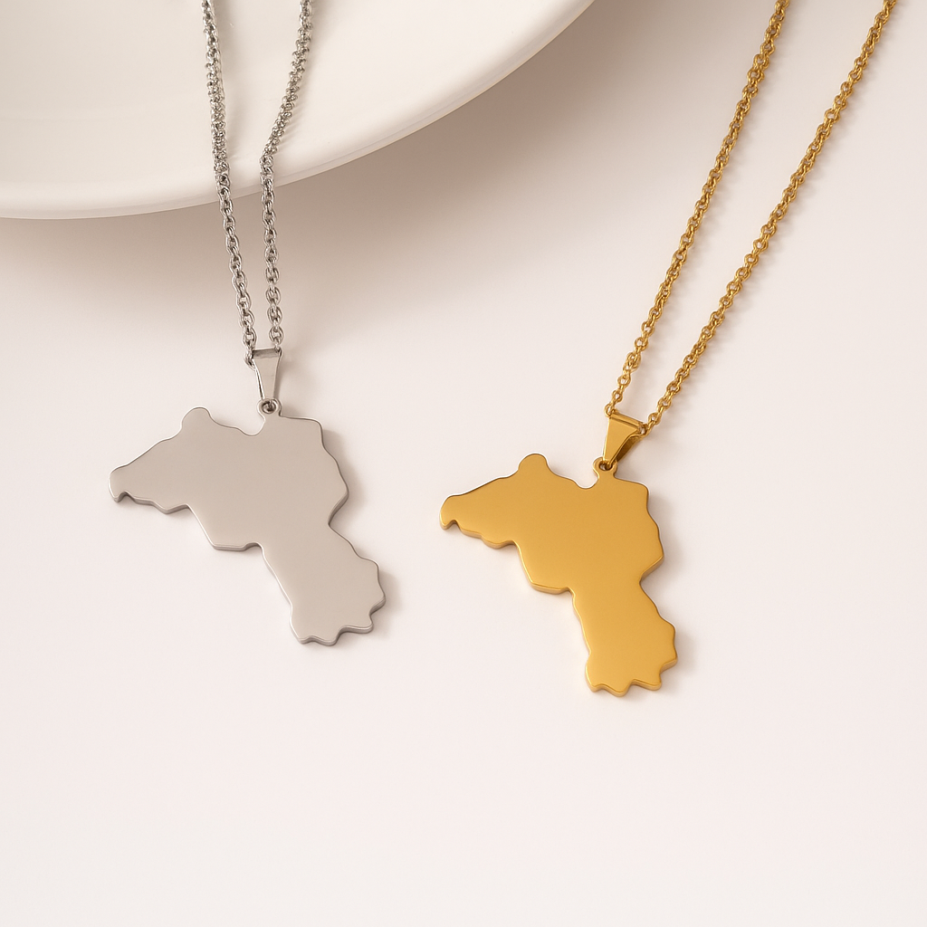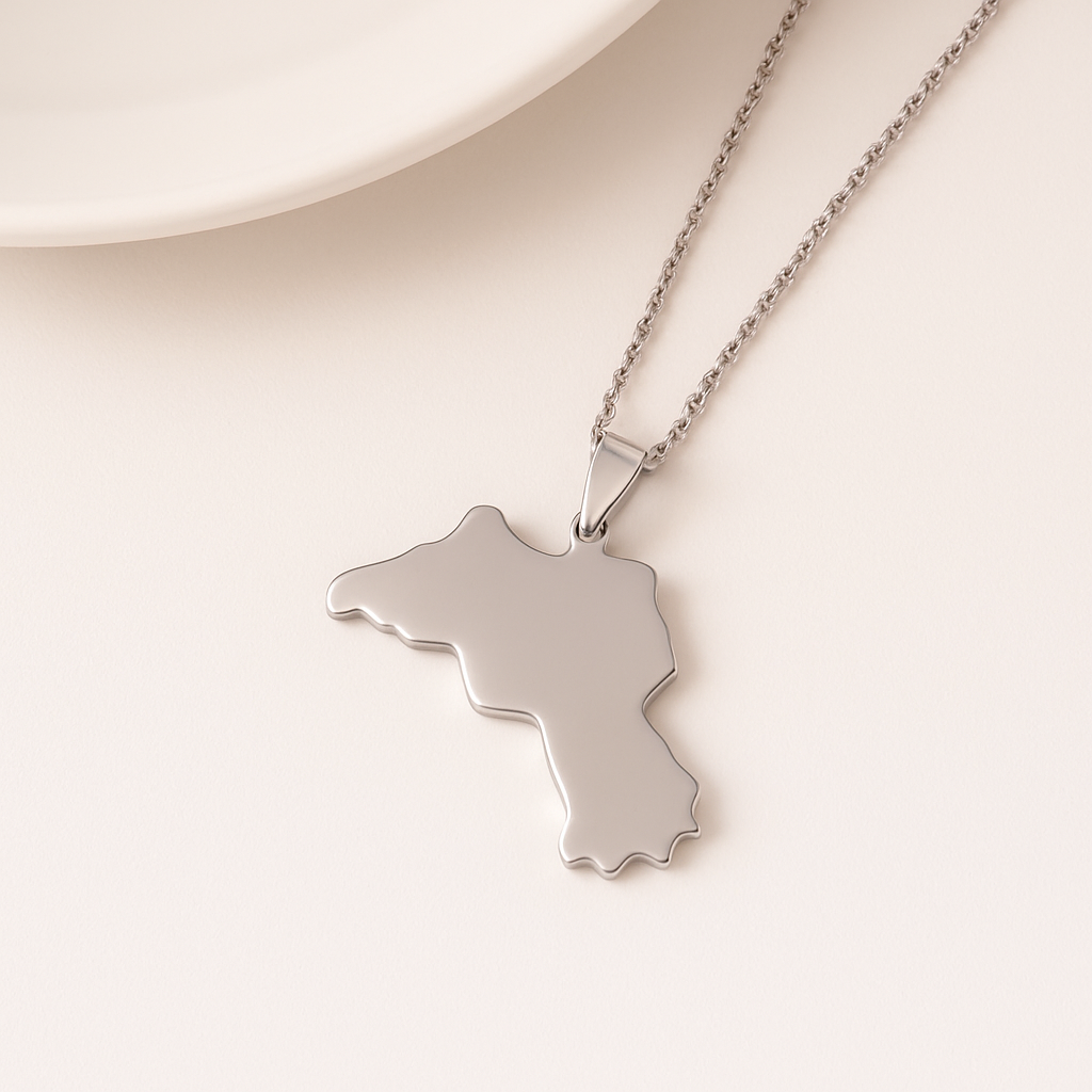 Albanien Halskette – Landkarten-Anhänger mit Flagge & Wappen (Silber & Gold)