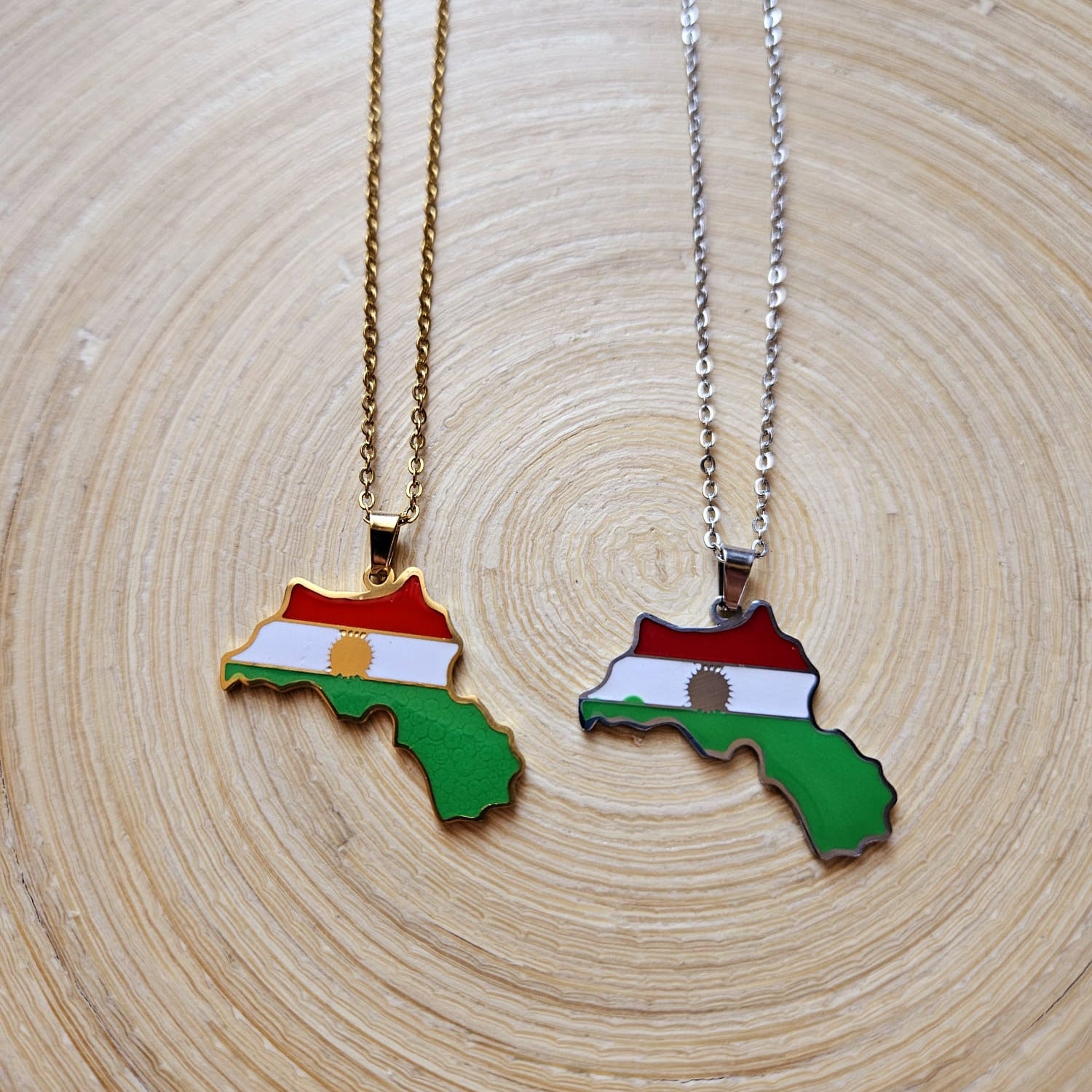 Serbien Halskette – Landesumriss mit Flagge & Wappen (Gold & Silber, Edelstahl)