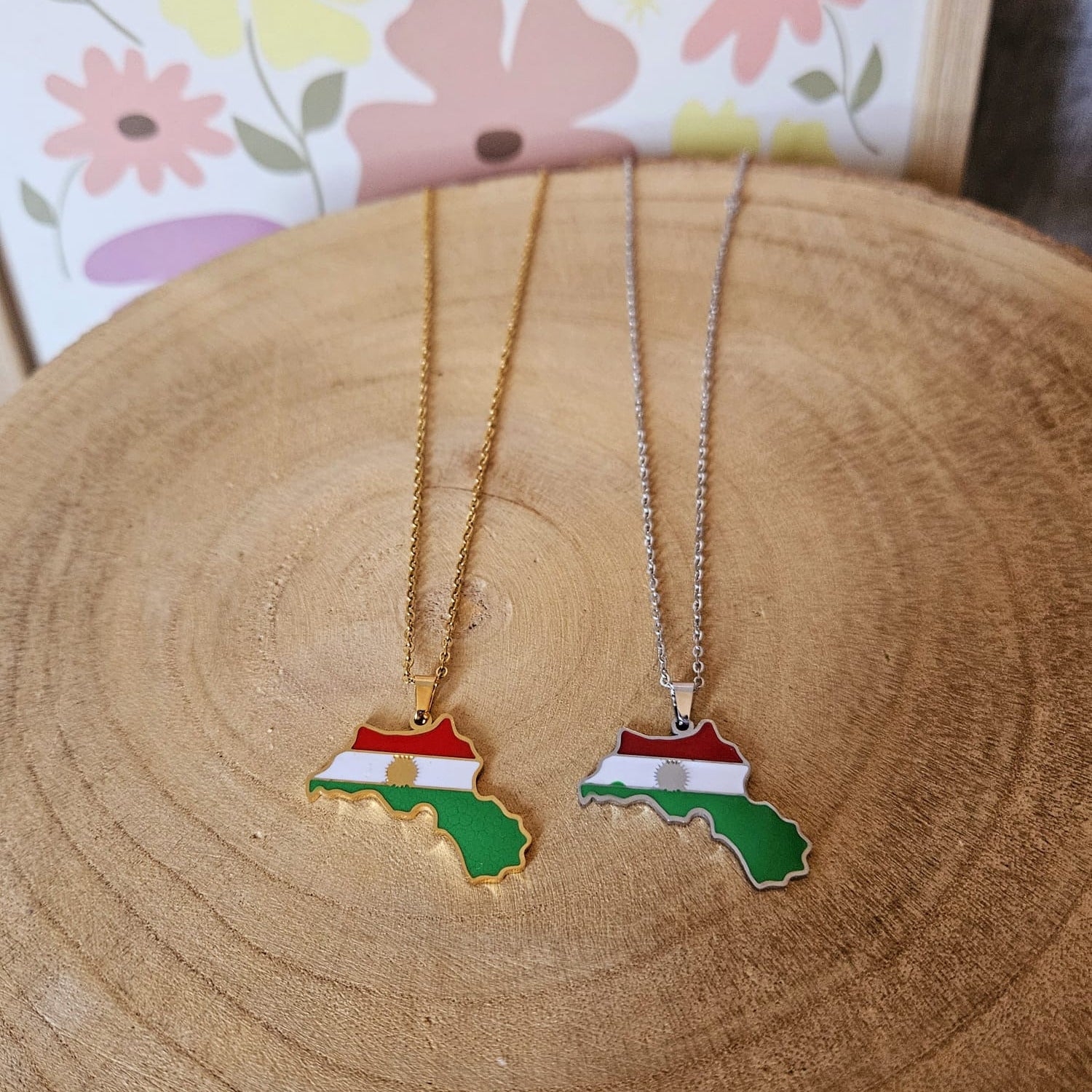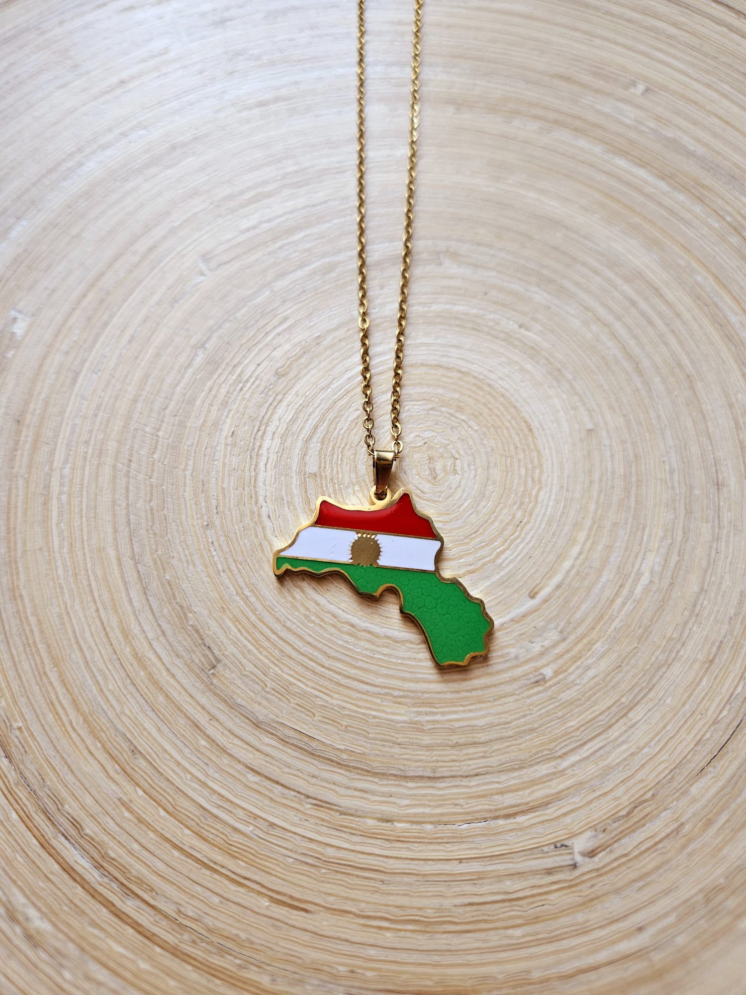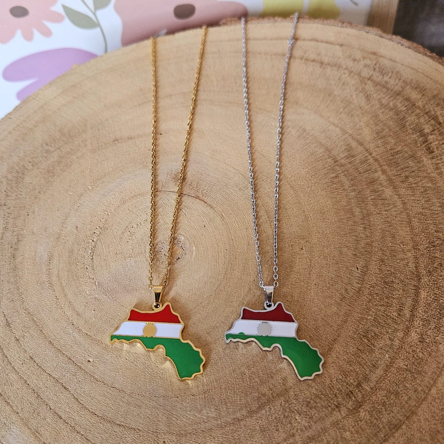 Albanien Halskette – Landkarten-Anhänger mit Flagge & Wappen (Silber & Gold)