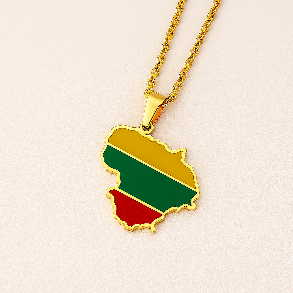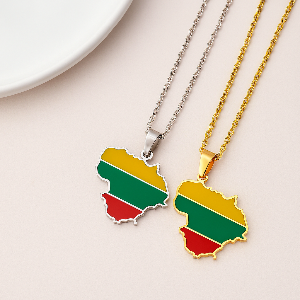 Albanien Halskette – Landkarten-Anhänger mit Flagge & Wappen (Silber & Gold)
