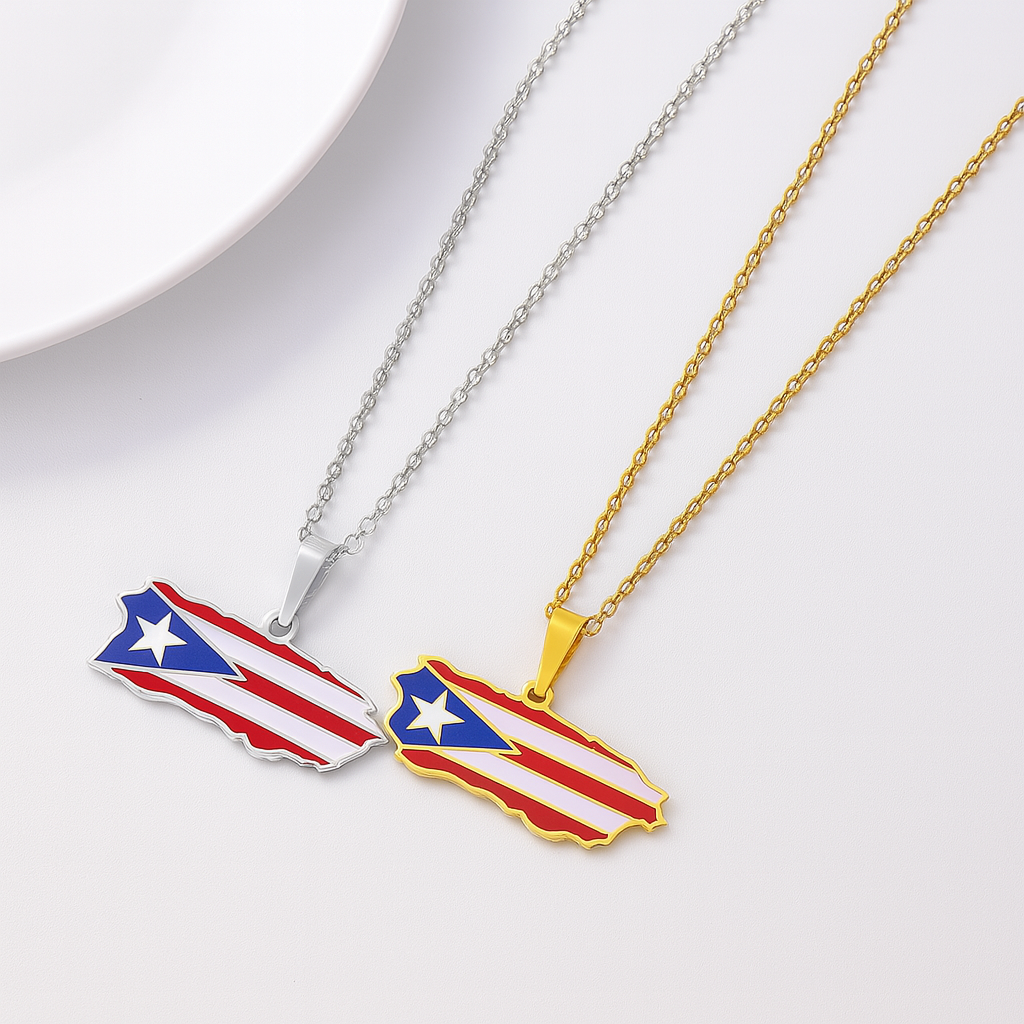 Albanien Halskette – Landkarten-Anhänger mit Flagge & Wappen (Silber & Gold)