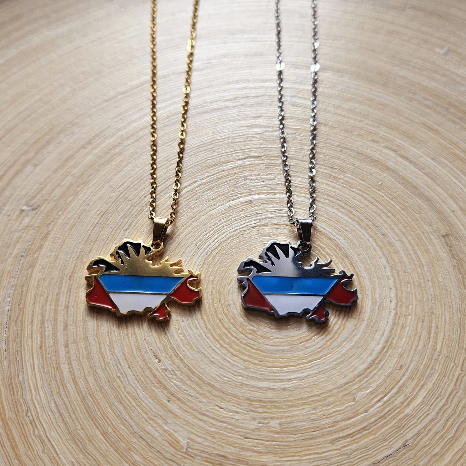 Albanien Halskette – Landkarten-Anhänger mit Flagge & Wappen (Silber & Gold)