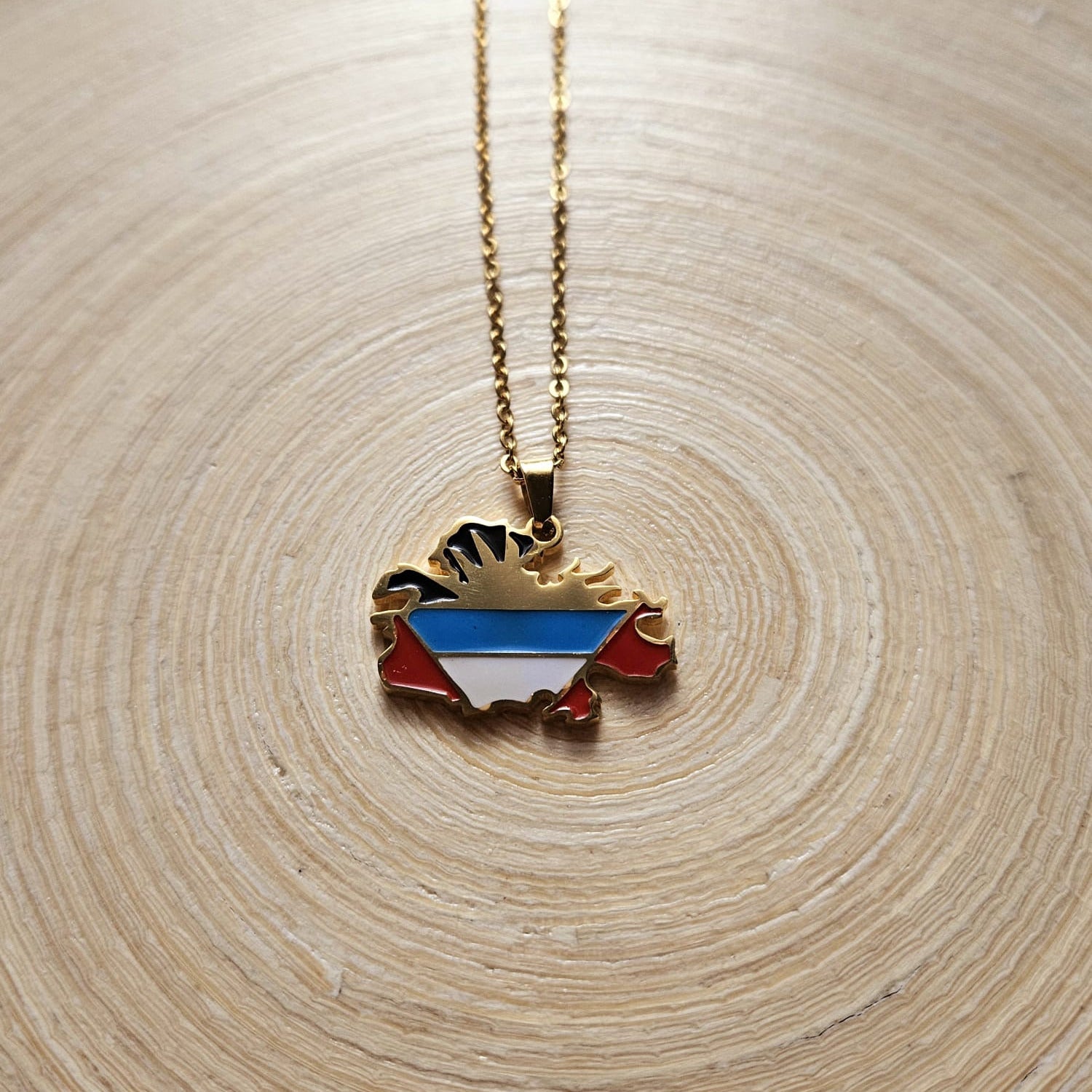 Serbien Halskette – Landesumriss mit Flagge & Wappen (Gold & Silber, Edelstahl)