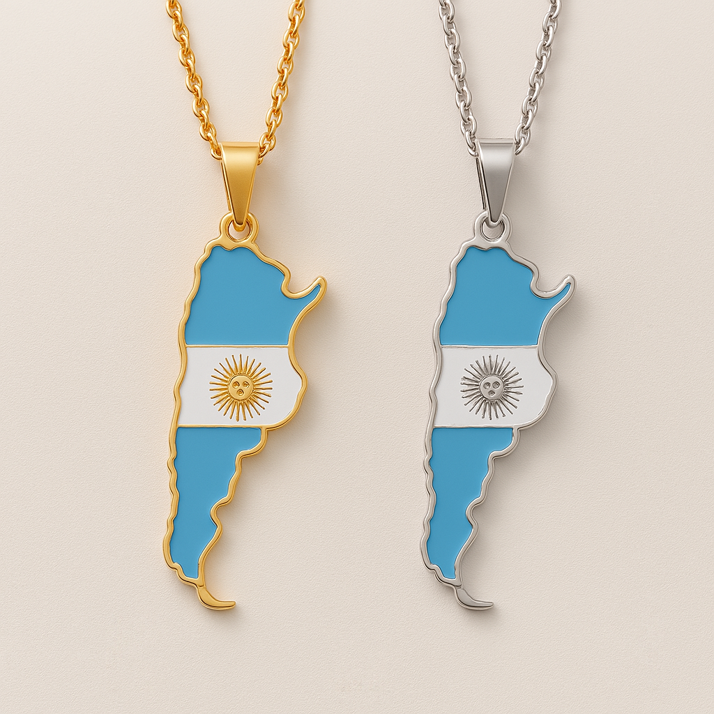 Albanien Halskette – Landkarten-Anhänger mit Flagge & Wappen (Silber & Gold)