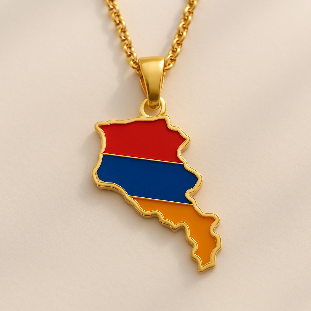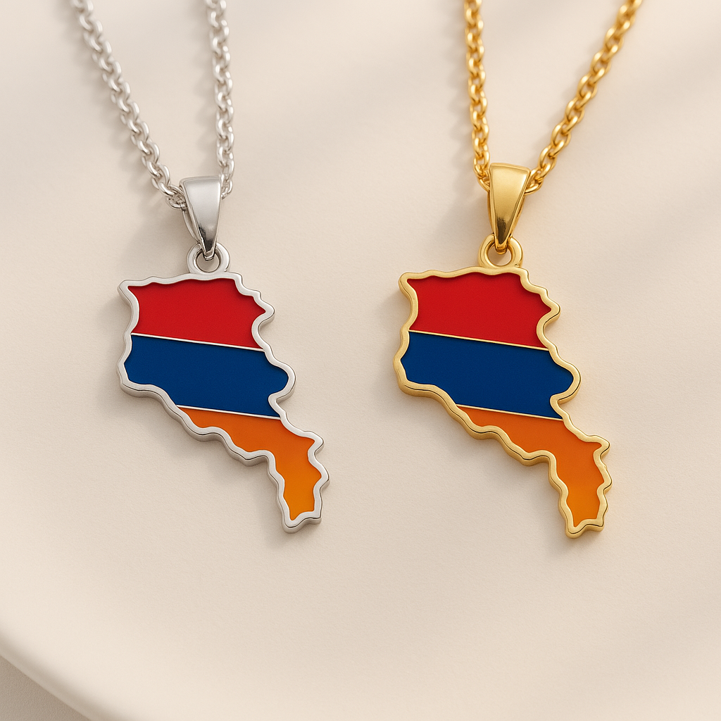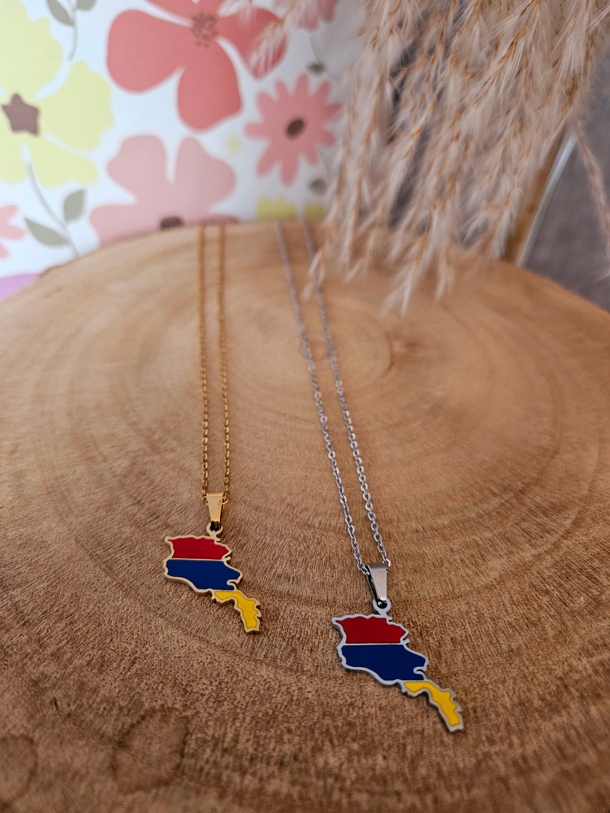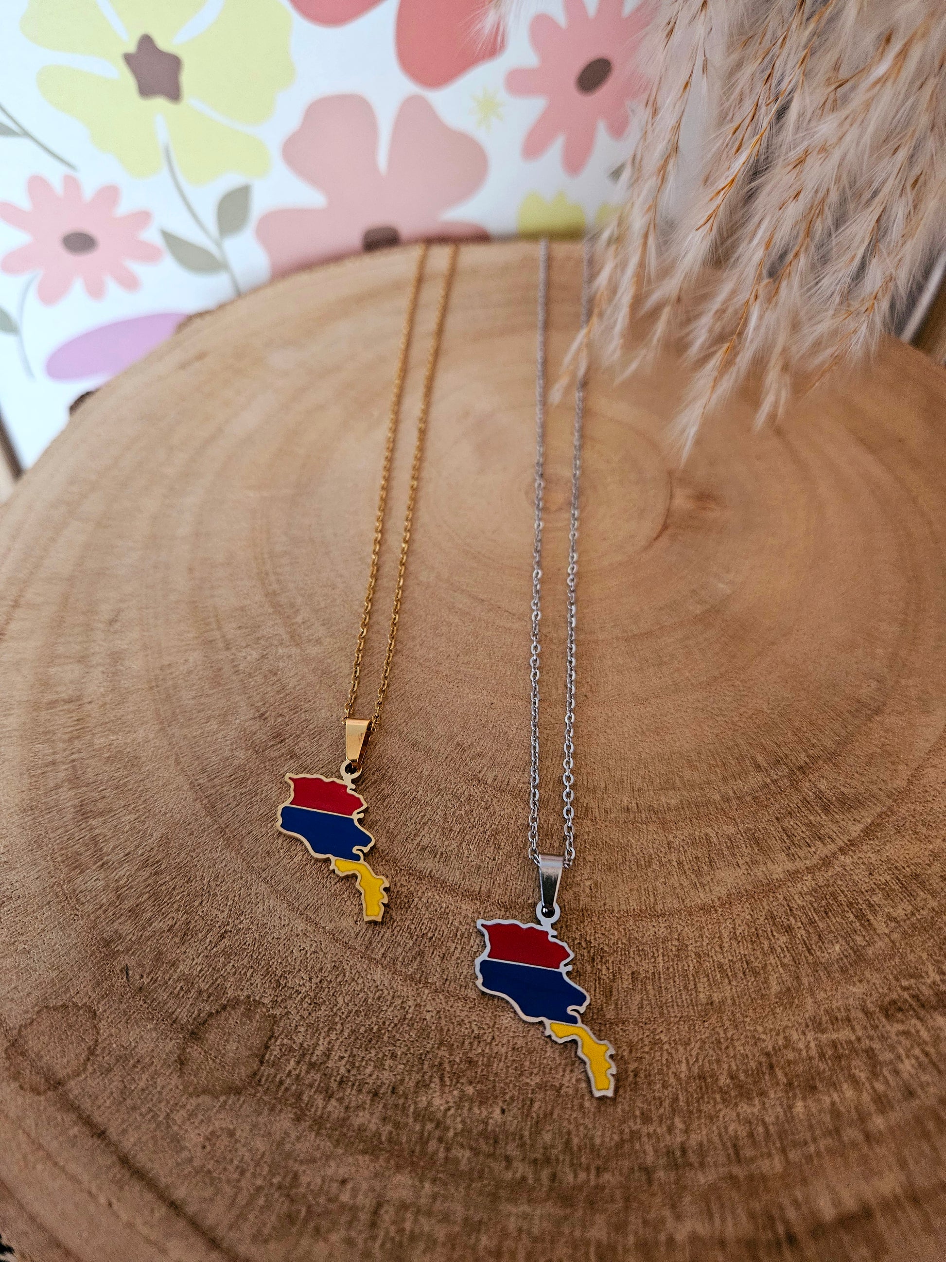 Albanien Halskette – Landkarten-Anhänger mit Flagge & Wappen (Silber & Gold)