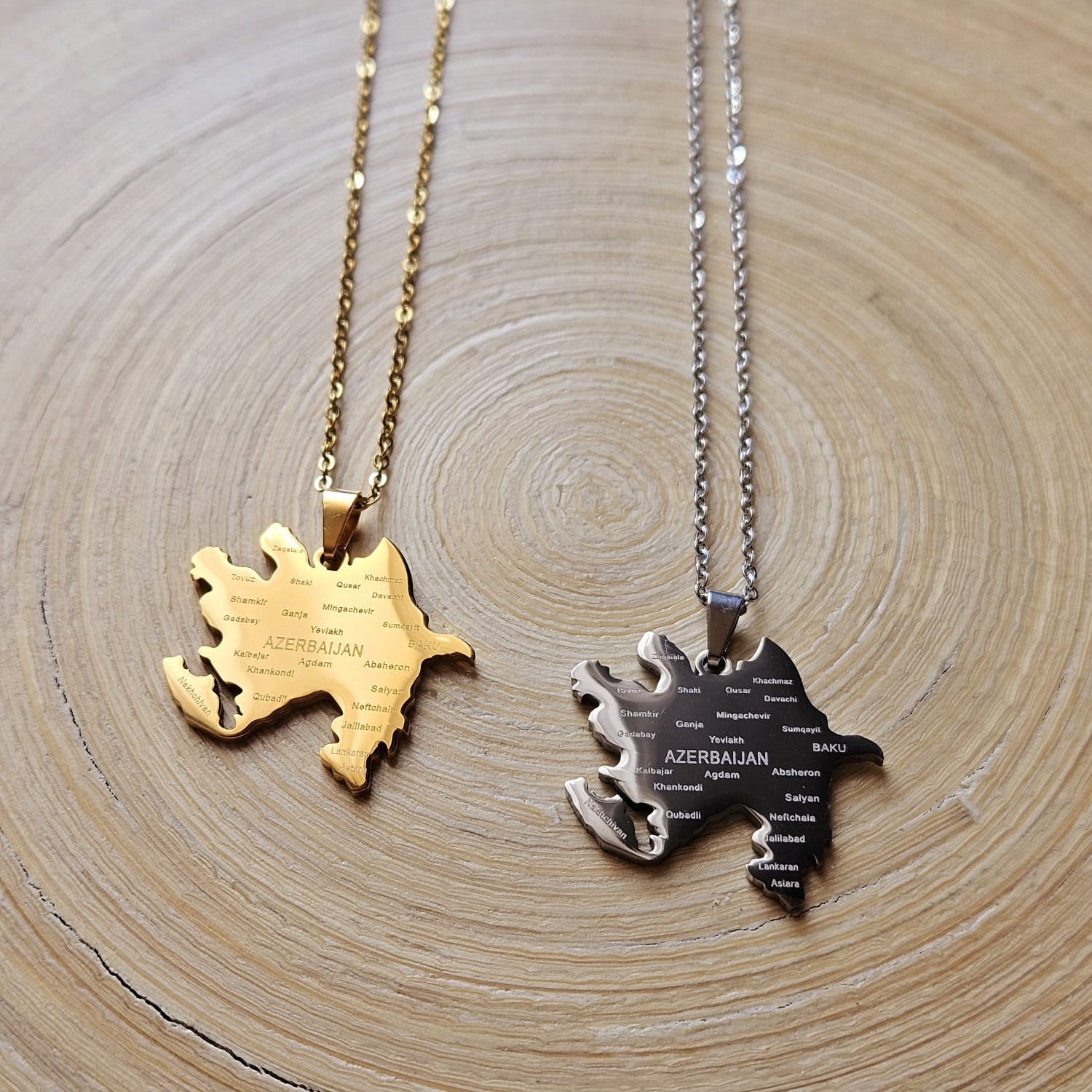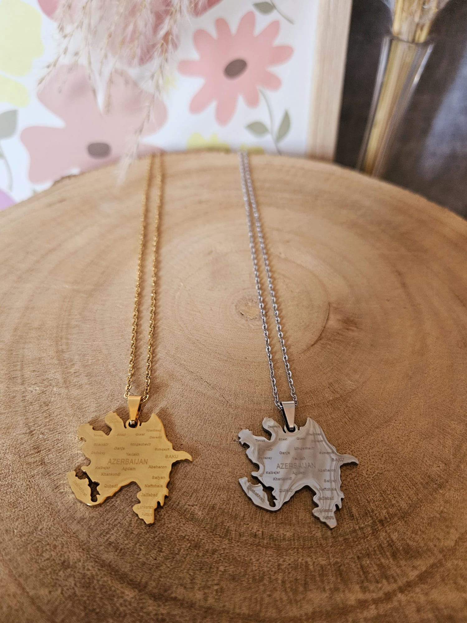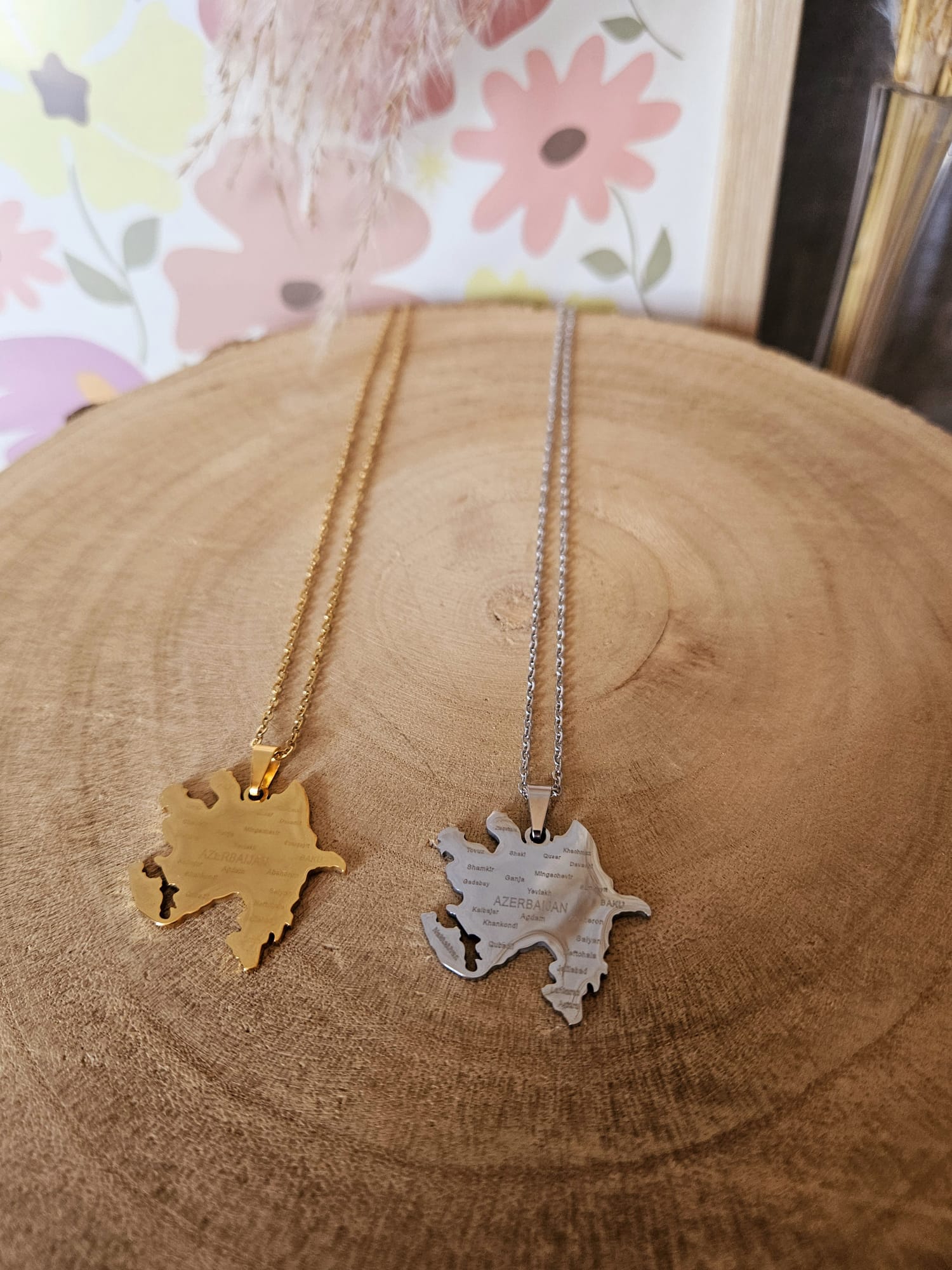 Albanien Halskette – Landkarten-Anhänger mit Flagge & Wappen (Silber & Gold)
