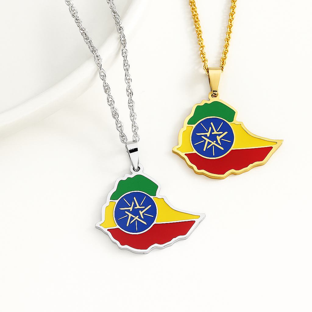 Albanien Halskette – Landkarten-Anhänger mit Flagge & Wappen (Silber & Gold)