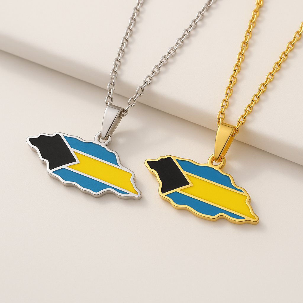 Serbien Halskette – Landesumriss mit Flagge & Wappen (Gold & Silber, Edelstahl)