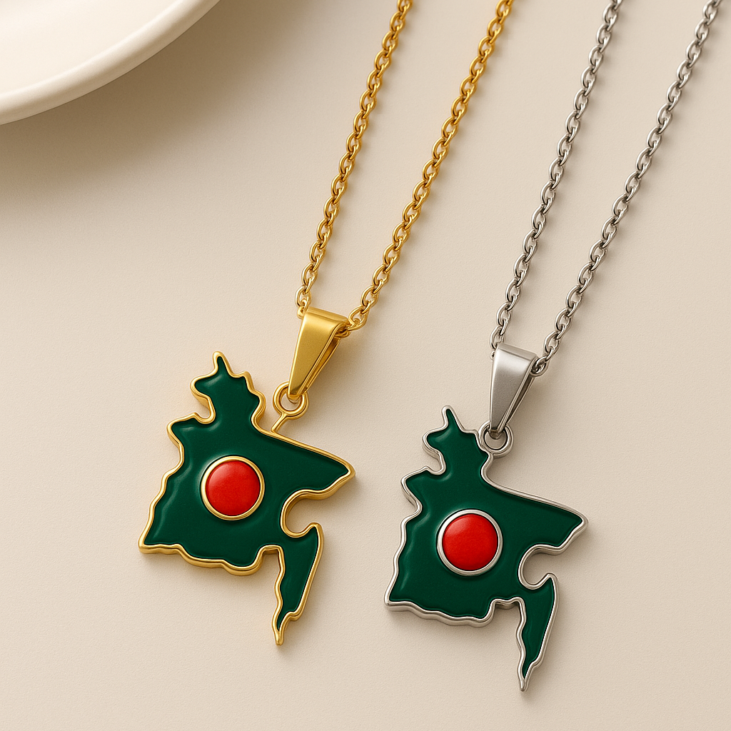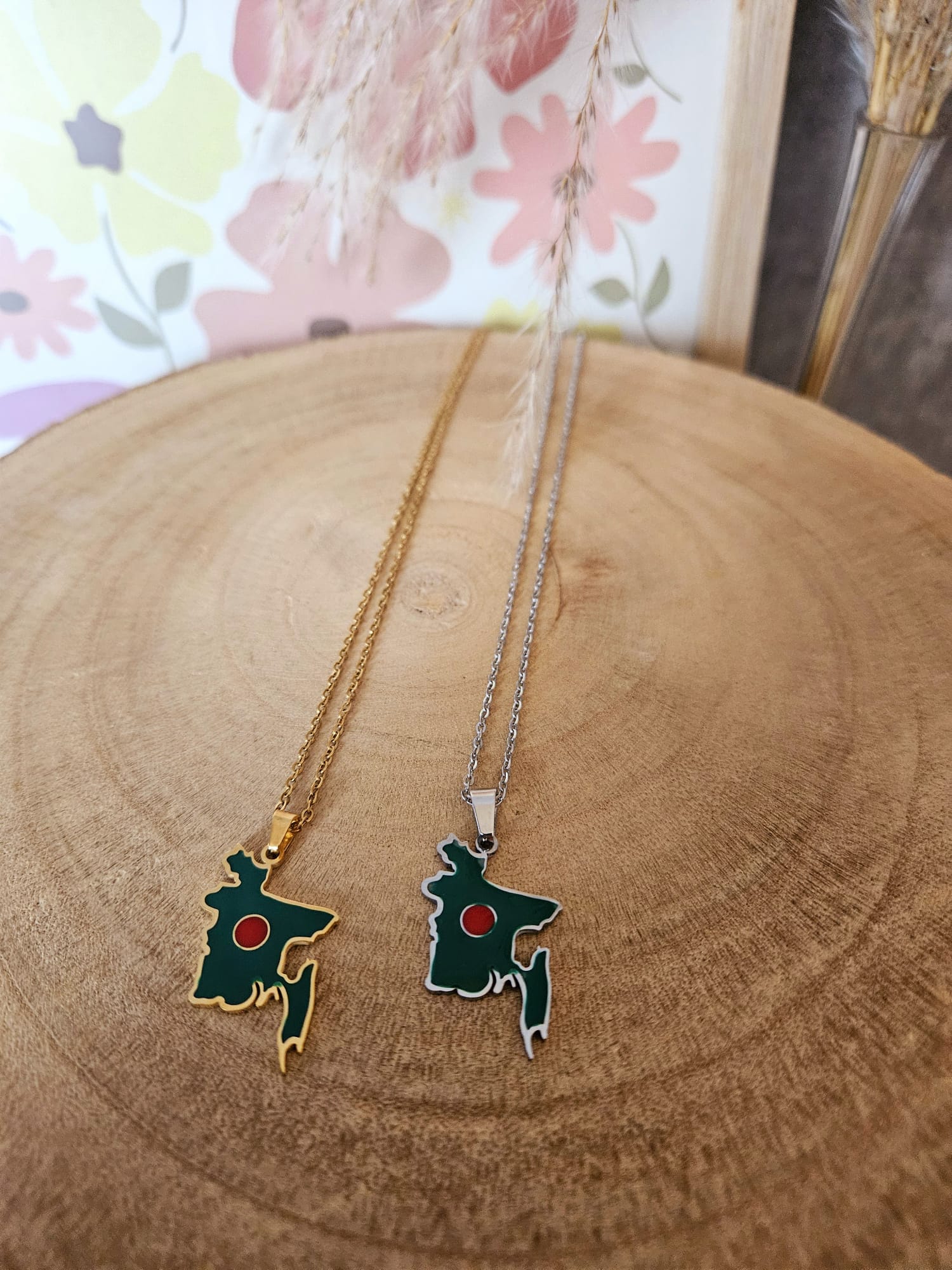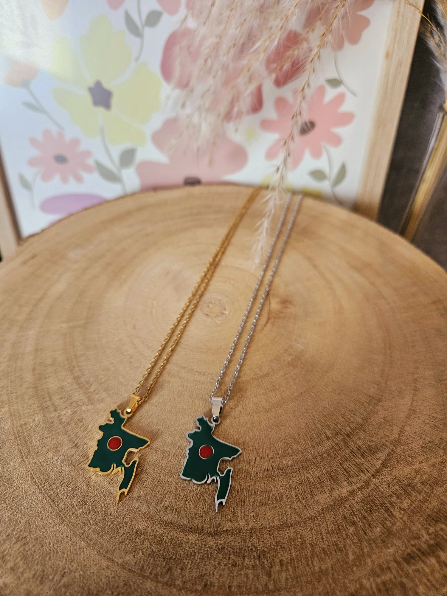 Albanien Halskette – Landkarten-Anhänger mit Flagge & Wappen (Silber & Gold)
