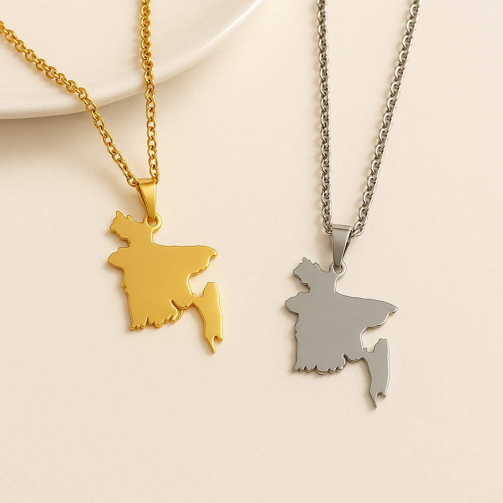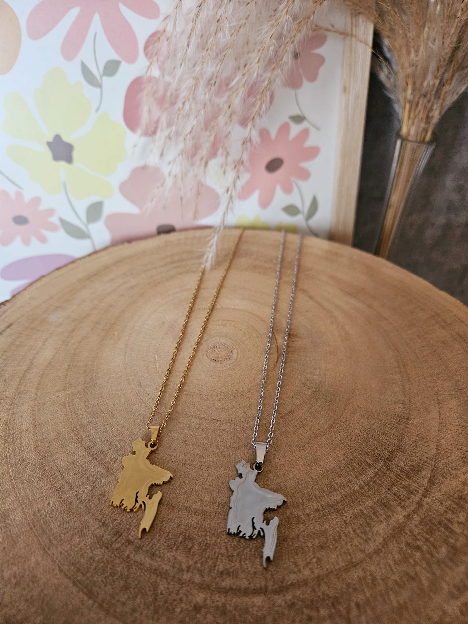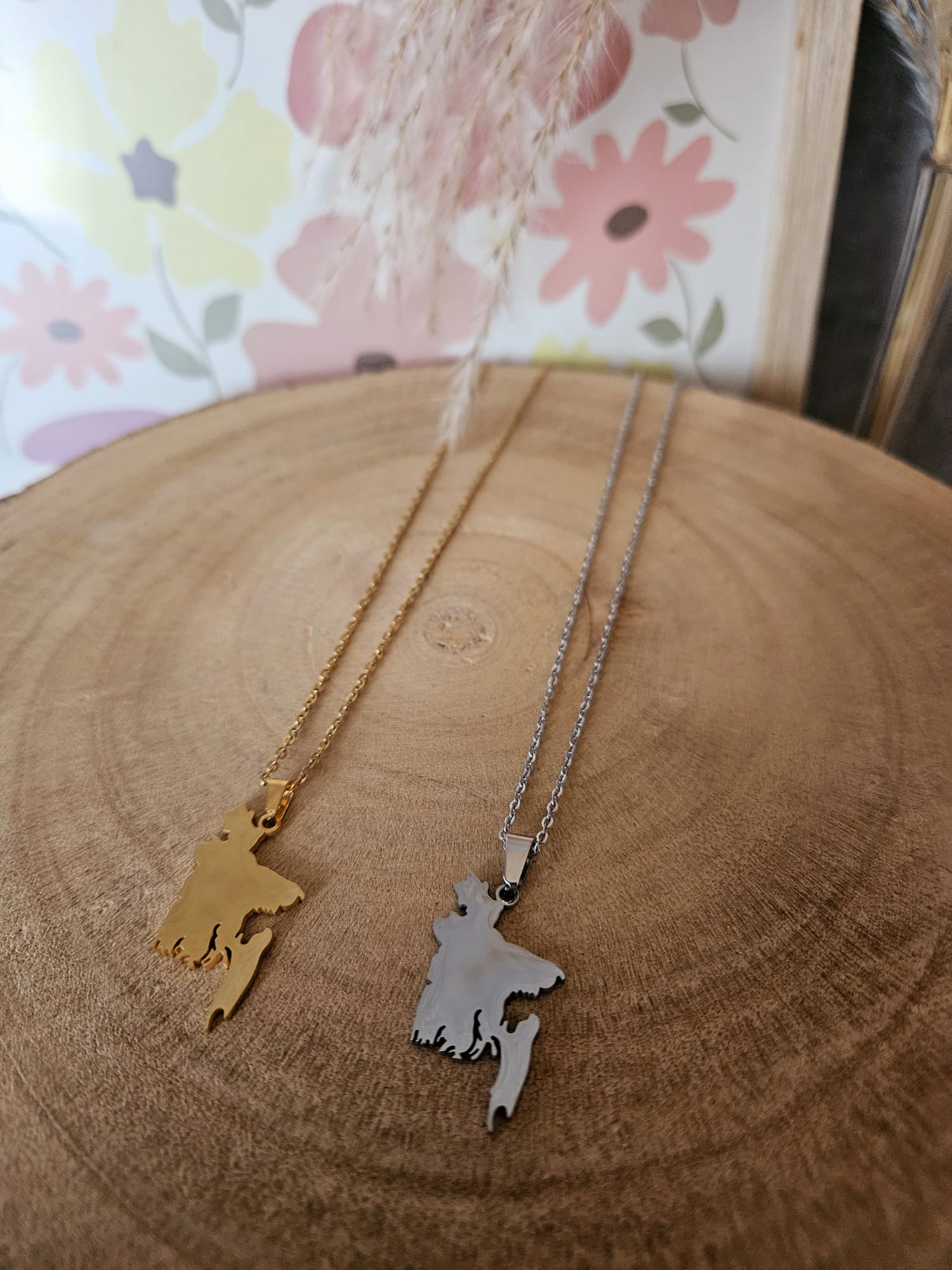 Albanien Halskette – Landkarten-Anhänger mit Flagge & Wappen (Silber & Gold)
