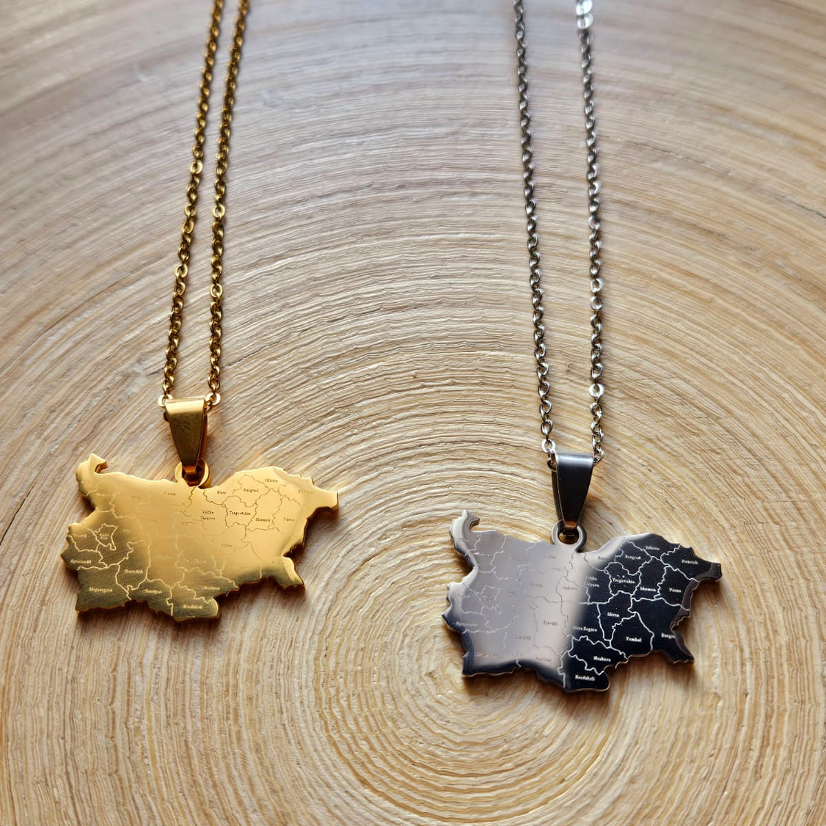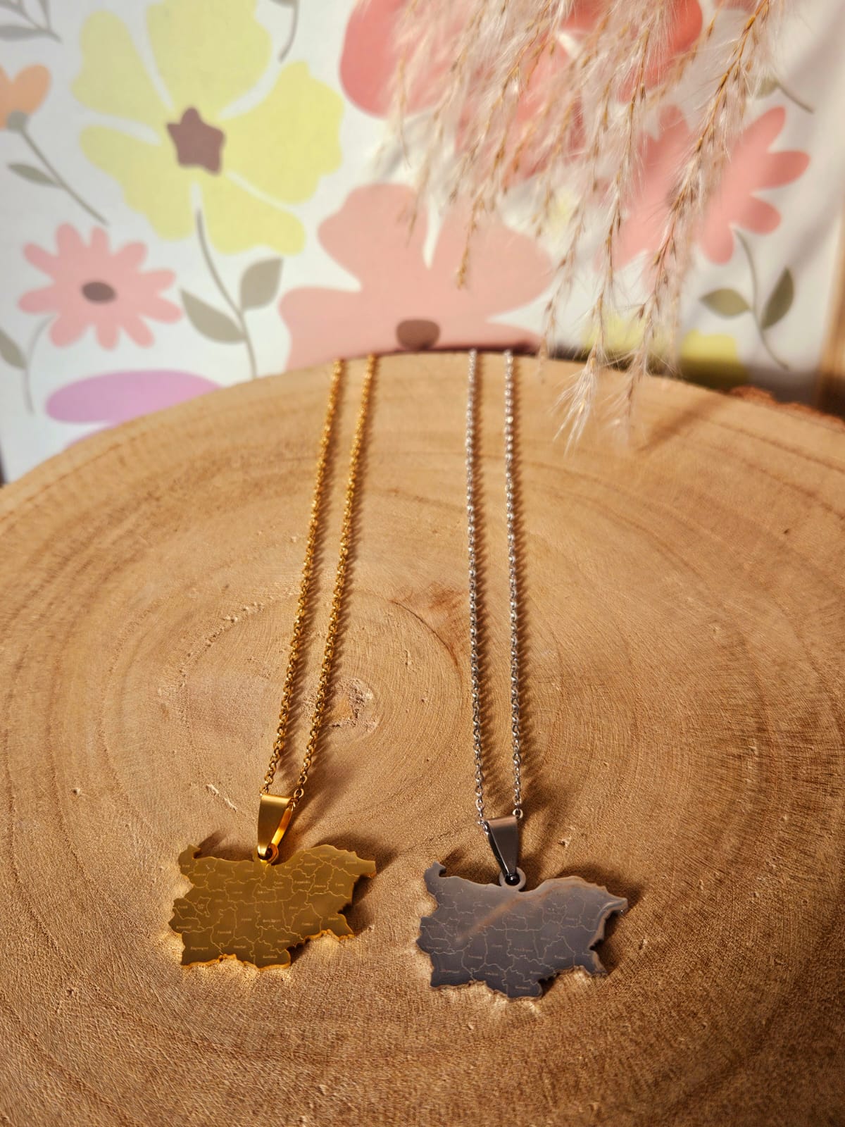 Albanien Halskette – Landkarten-Anhänger mit Flagge & Wappen (Silber & Gold)
