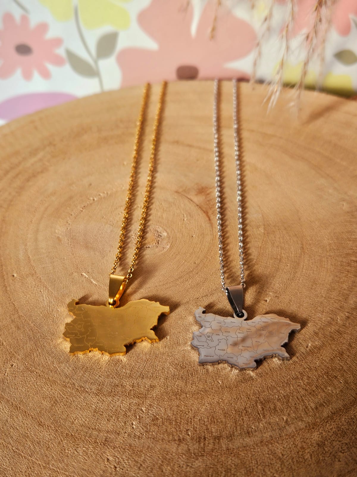 Serbien Halskette – Landesumriss mit Flagge & Wappen (Gold & Silber, Edelstahl)