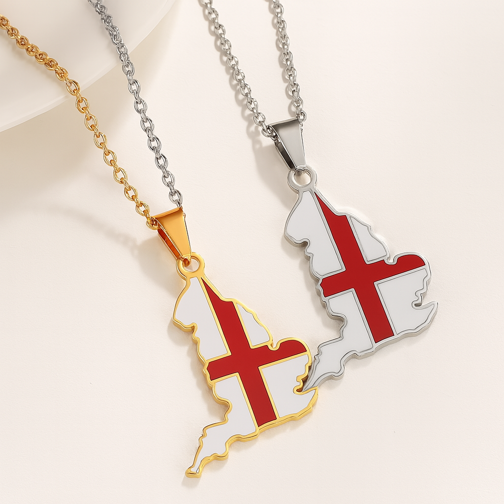 Albanien Halskette – Landkarten-Anhänger mit Flagge & Wappen (Silber & Gold)