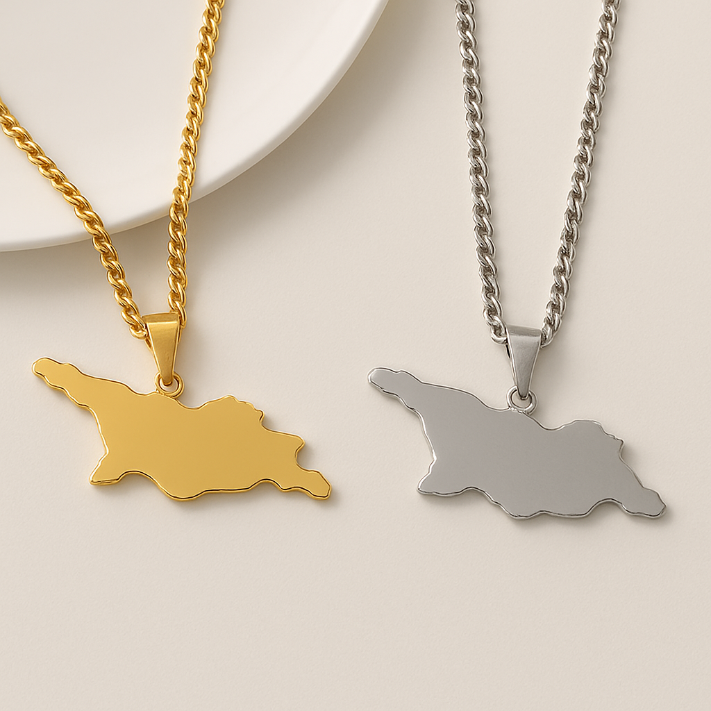 Albanien Halskette – Landkarten-Anhänger mit Flagge & Wappen (Silber & Gold)