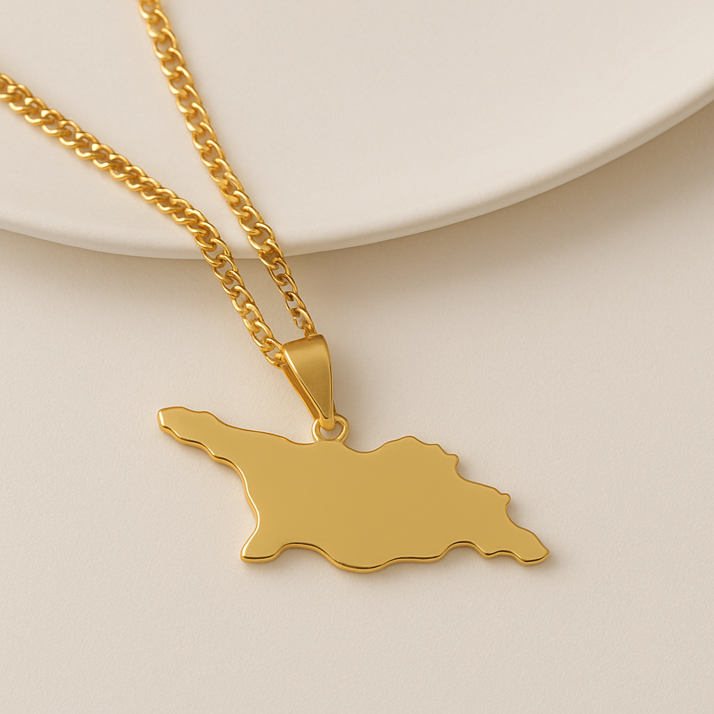 Serbien Halskette – Landesumriss mit Flagge & Wappen (Gold & Silber, Edelstahl)