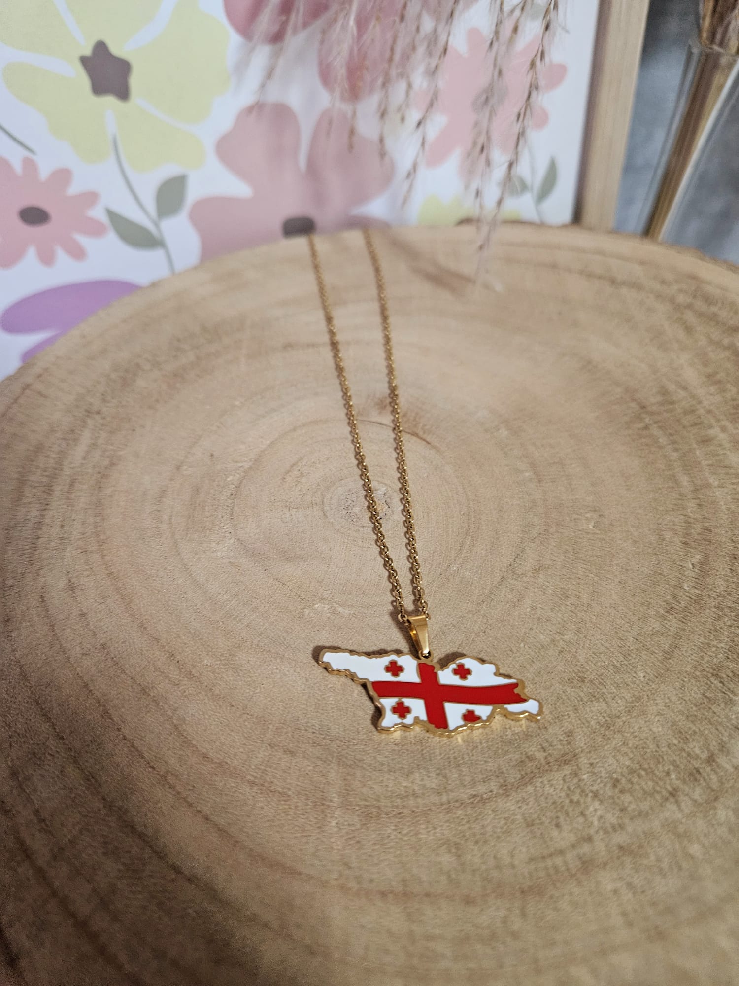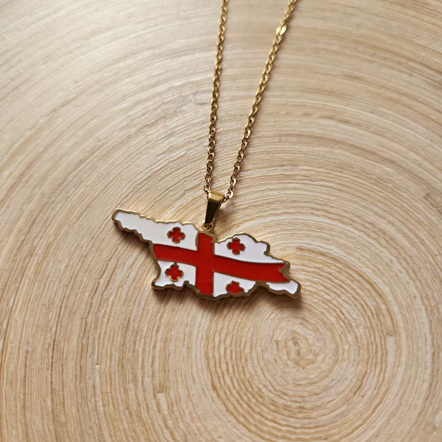 Albanien Halskette – Landkarten-Anhänger mit Flagge & Wappen (Silber & Gold)