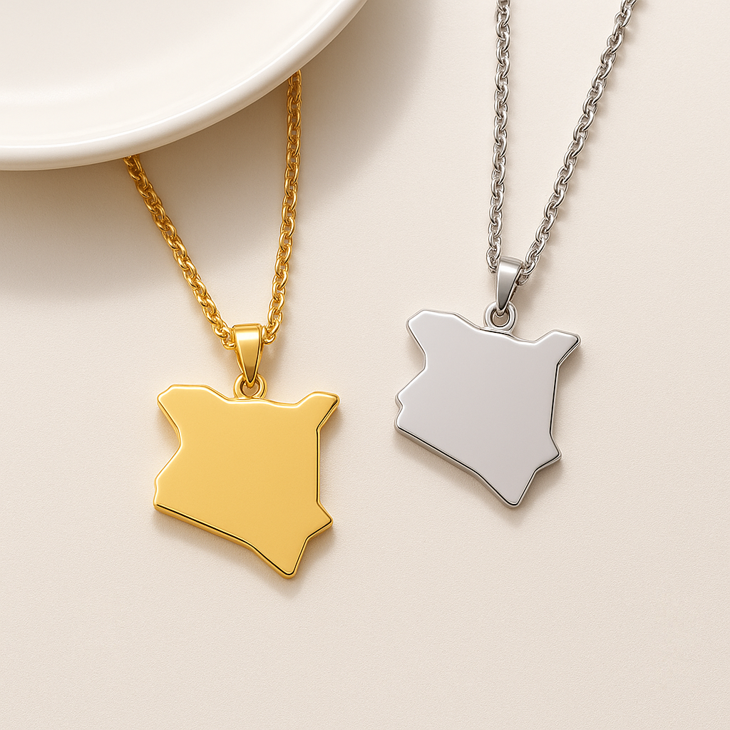 Albanien Halskette – Landkarten-Anhänger mit Flagge & Wappen (Silber & Gold)