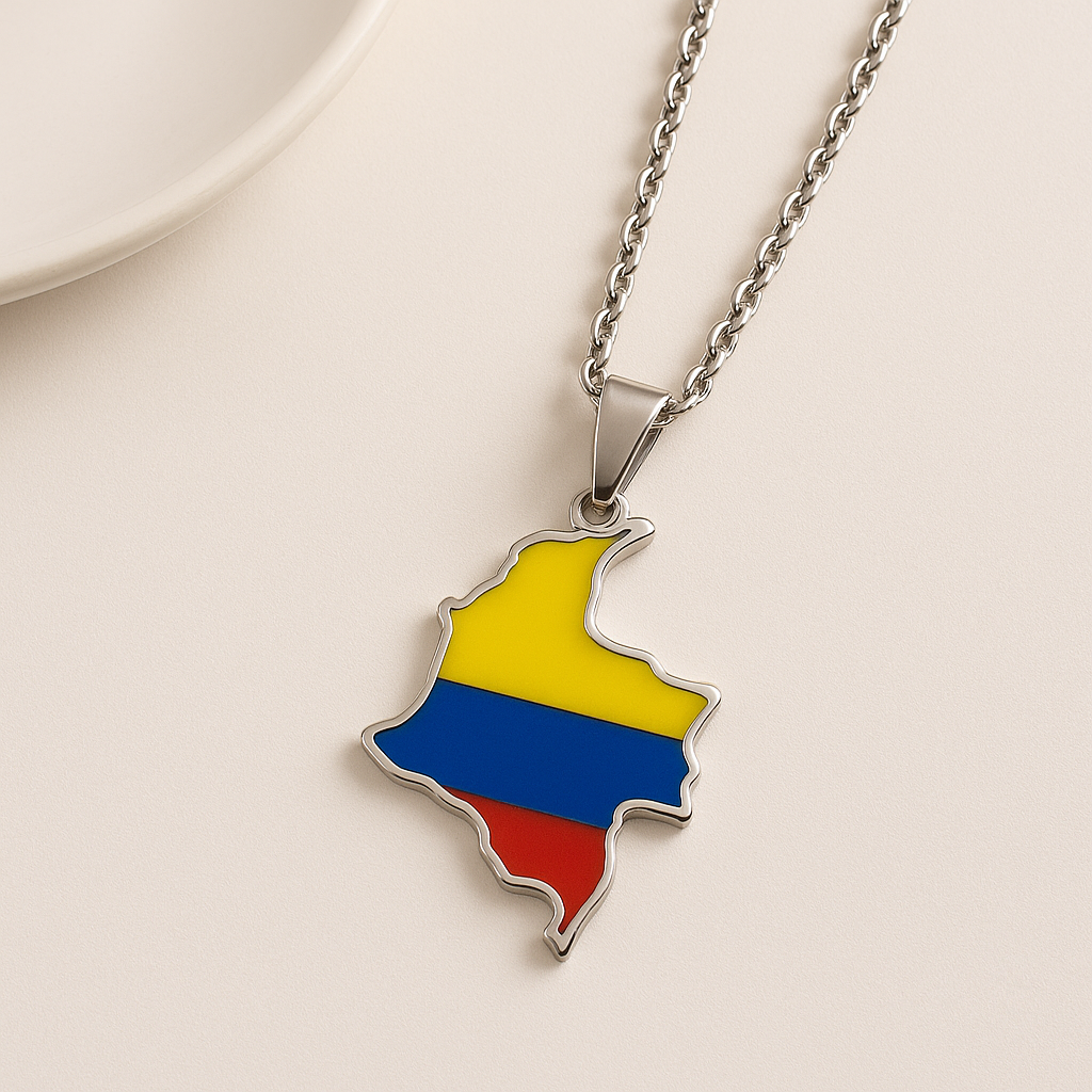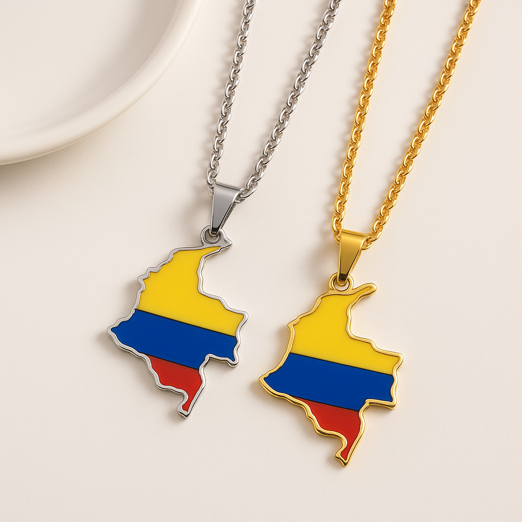 Albanien Halskette – Landkarten-Anhänger mit Flagge & Wappen (Silber & Gold)