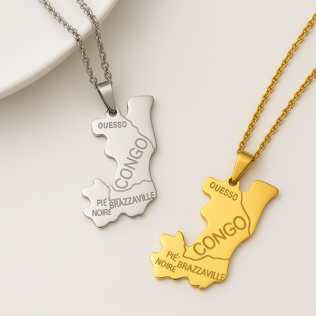 Serbien Halskette – Landesumriss mit Flagge & Wappen (Gold & Silber, Edelstahl)