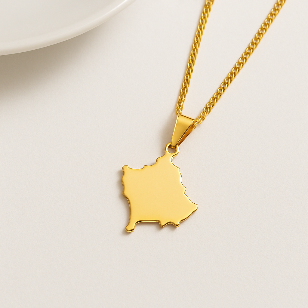 Albanien Halskette – Landkarten-Anhänger mit Flagge & Wappen (Silber & Gold)