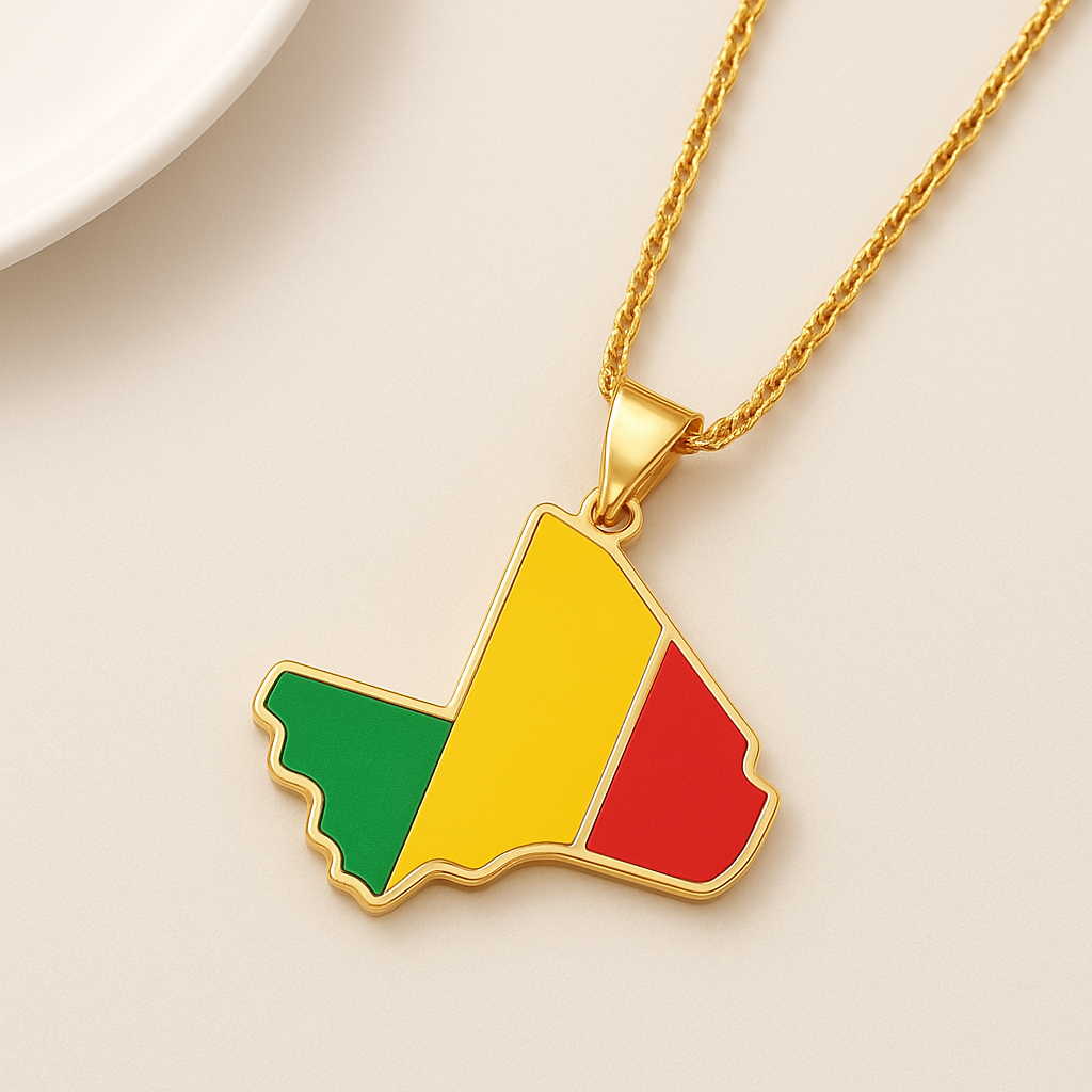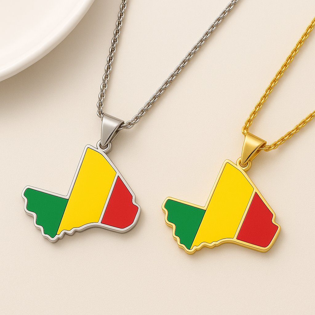 Albanien Halskette – Landkarten-Anhänger mit Flagge & Wappen (Silber & Gold)