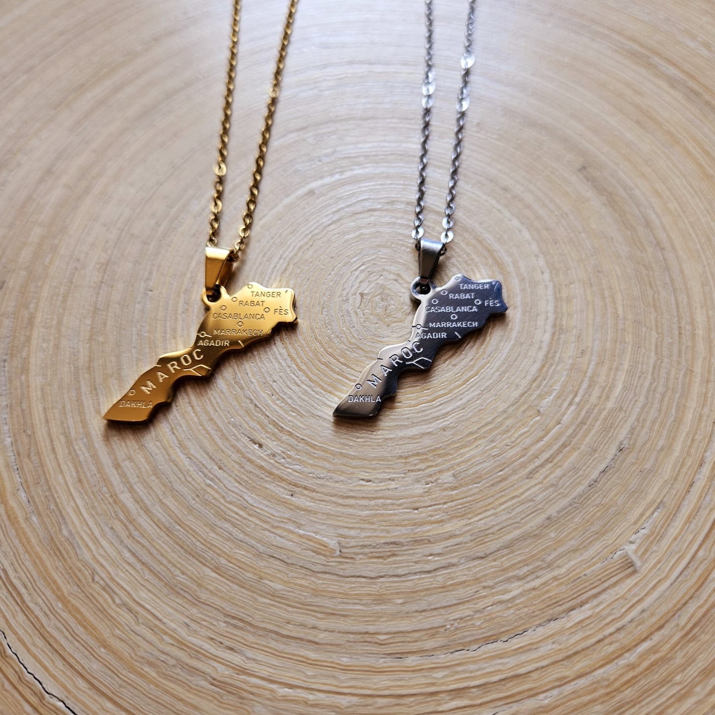 Albanien Halskette – Landkarten-Anhänger mit Flagge & Wappen (Silber & Gold)
