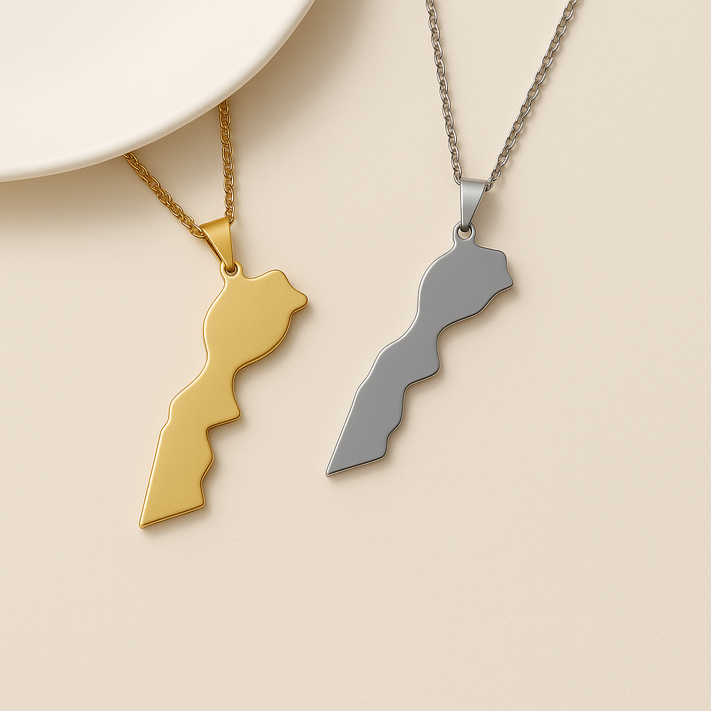 Albanien Halskette – Landkarten-Anhänger mit Flagge & Wappen (Silber & Gold)