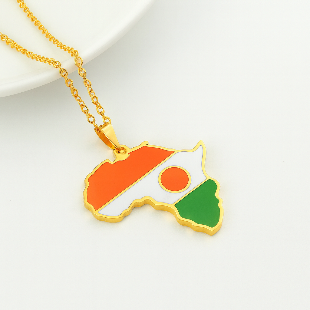 Serbien Halskette – Landesumriss mit Flagge & Wappen (Gold & Silber, Edelstahl)