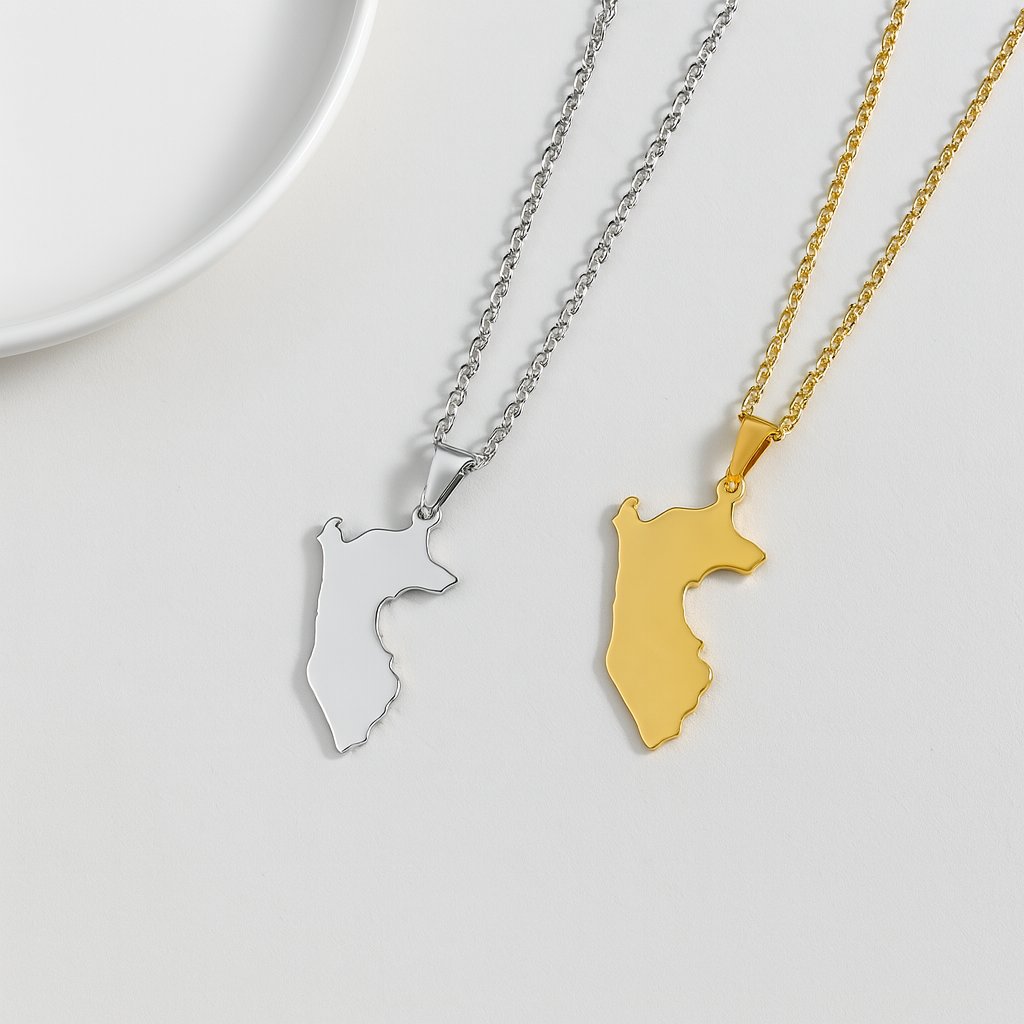 Albanien Halskette – Landkarten-Anhänger mit Flagge & Wappen (Silber & Gold)