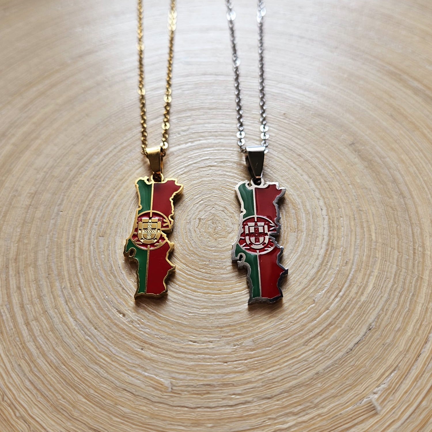 Albanien Halskette – Landkarten-Anhänger mit Flagge & Wappen (Silber & Gold)