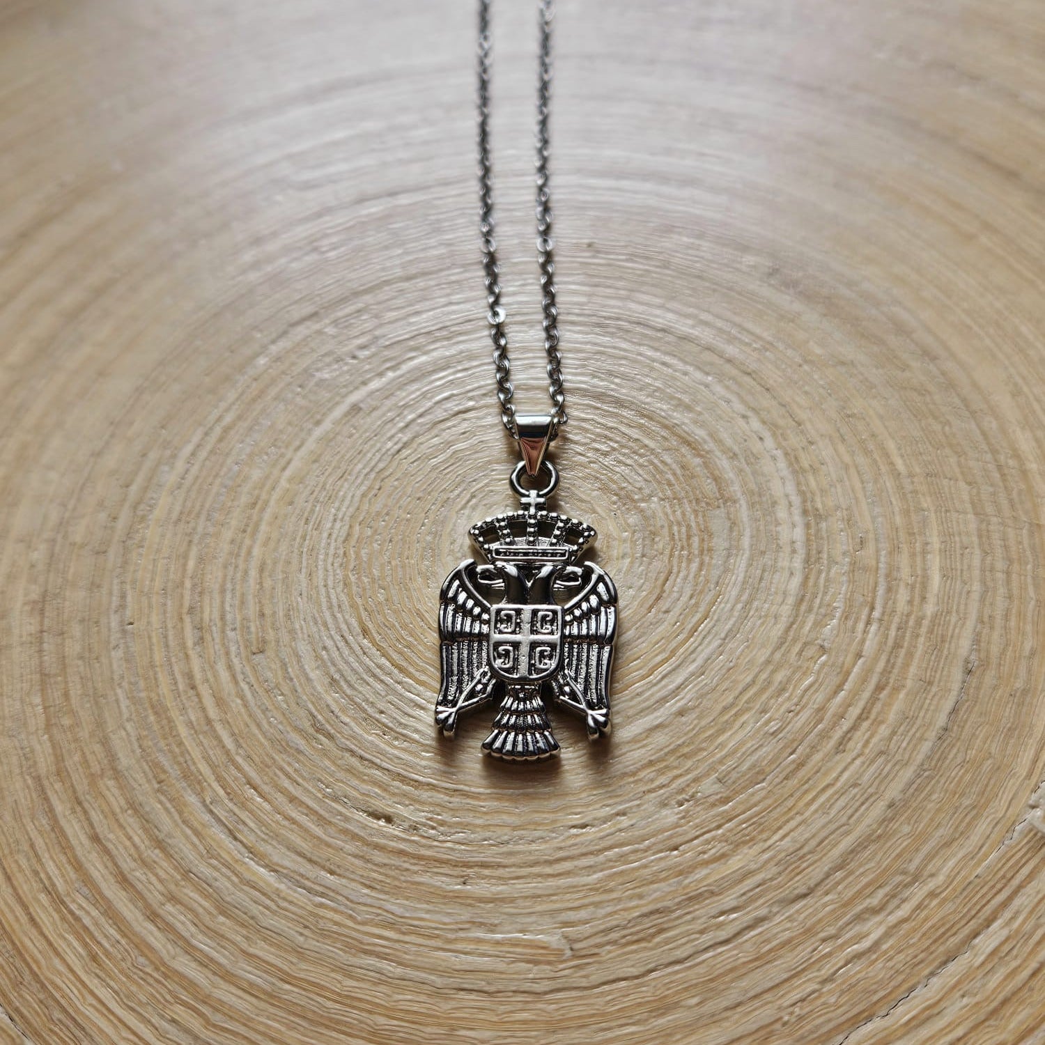 Serbien Halskette – Landesumriss mit Flagge & Wappen (Gold & Silber, Edelstahl)