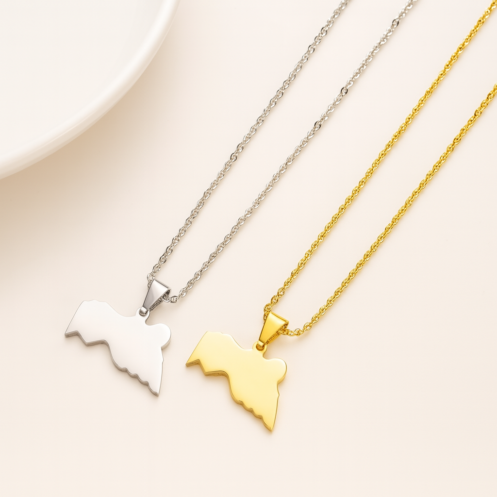 Albanien Halskette – Landkarten-Anhänger mit Flagge & Wappen (Silber & Gold)